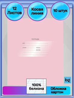 Тетрадь в линию косую узкую 12 листов 10 штук