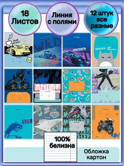 тетрадь в линейку 18 листов для мальчика 12 штук