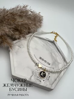 Чокер из Жемчужных бусин подвеска сердце и буква черная H