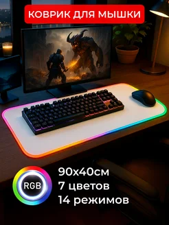 Коврик для мышки большой игровой с подсветкой rgb 90х40