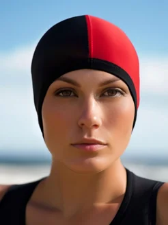 Шапочка для плавания тканевая красно-черная