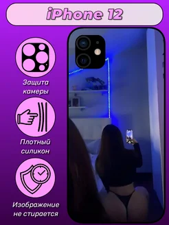 Чехол на iPhone 12 с принтом защитой камеры с надписью