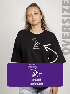 Футболка оверсайз c надписью "Воробушек-социофобушек"