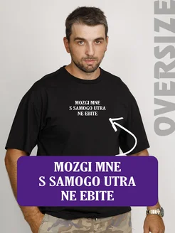 Футболка оверсайз c надписью "Mozgi mne ne. s samogo ytra"