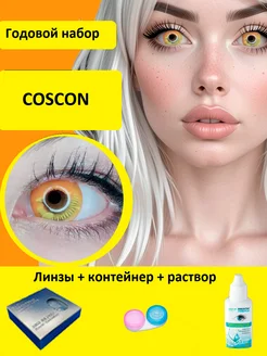 Желто-оранжевые линзы на год с раствором-Coscon -8