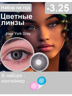 Цветные линзы на год-темно серые-New York Gray -3.25