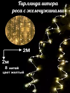 Гирлянда штора занавес на окно ёлку стену Роса Жемчуг 2х2м