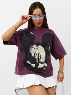 Футболка оверсайз с фиолетовый микки маус короткая