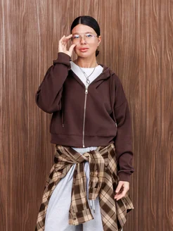 Толстовка укороченная с капюшоном зипка на молнии оверсайз