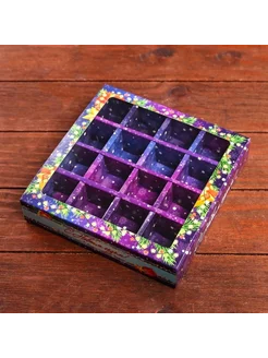 Упаковка для 16 конфет Новый Год, 17.7x17.7x3.8 см