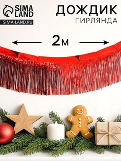 Гирлянда дождик с липкой лентой красная 2 метра, 2 шт