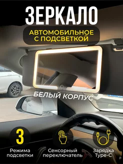 Зеркало автомобильное в салон на козырек с LED подсветкой