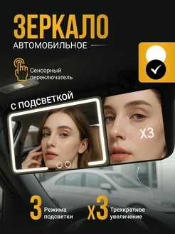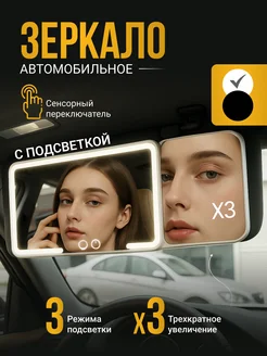 Зеркало в машину в козырек с LED подсветкой и 3х увеличением