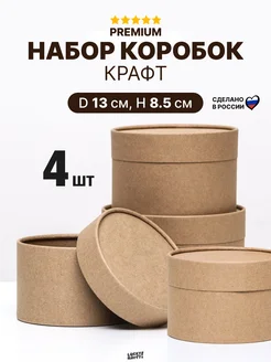 Набор круглая крафт коробка 4 шт - 13 х 8.5 см подарочные