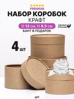 Набор круглая крафт коробка подарочная 4 шт 13 х 8.5 см бант