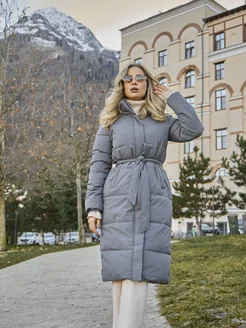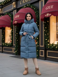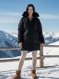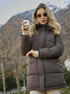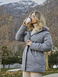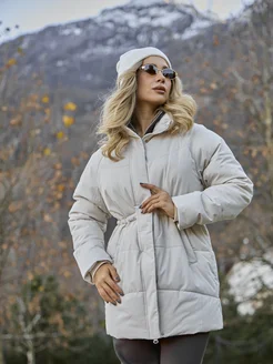 Куртка зимняя короткий пуховик с утяжкой и капюшоном