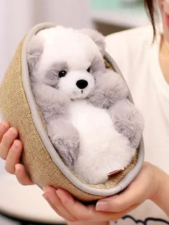 Мягкая игрушка медведь панда в корзинке 22 см