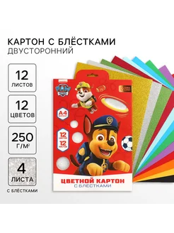 Картон цветной с блёстками, А4, 12 листов, 12 цветов