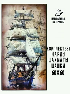 Набор игр 3в1 (шахматы, нарды, шашки) "Морские. Парусник"
