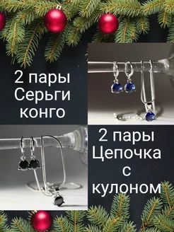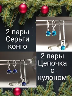 Серьги и цепочка с кулоном 2 пары