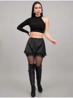 Юбка мини атласная с кружевом бельевая