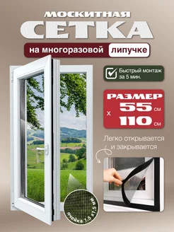 Москитная сетка на окно на липучках 55х110 см, серая, ПВХ