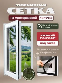 Москитная сетка на окно на липучках 105х185 см, серая, ПВХ