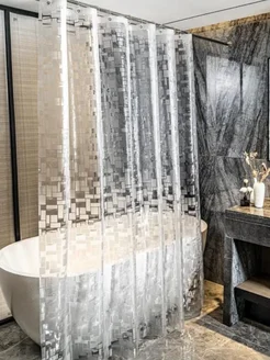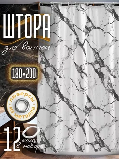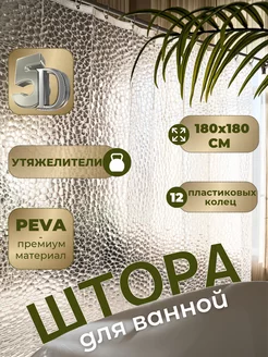 Штора для ванной 180х200 водонепроницаемая 3d на люверсах