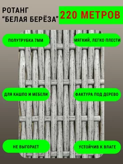 Искусственный ротанг "Белая берёза", полутрубка 7мм, 2кг