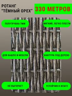 Искусственный ротанг "Тёмный орех", полутрубка 7мм, 3кг