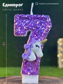 Свеча-цифра, 7, "Единорог", 7,5 см, 1 шт