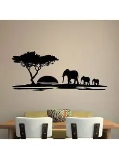 Картина на стену, панно деревянное слоны