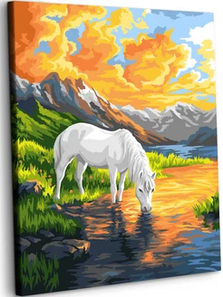 Белый конь на закате Картина по номерам на холсте 40х50 см
