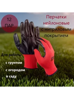 Перчатки рабочие нейлоновые ПВХ точка 12 ПАР