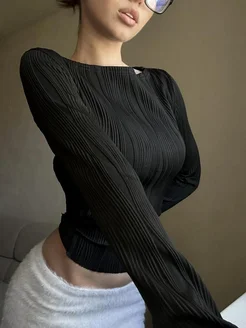 Лонгслив с вырезом обтягивающий трикотажный кофта