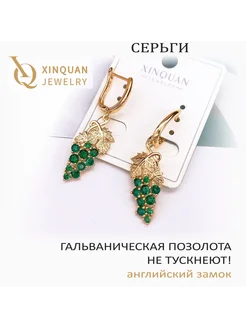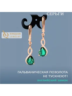 Серьги EMERALD DROP, 37х8 мм, позолота