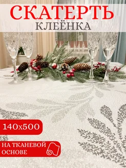 Скатерть на стол клеенка 140х500 новогодняя на ткани