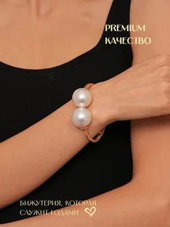 браслет женский на руку под золото бижутерия жемчуг широкий