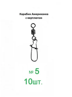 Вертлюг рыболовный с карабином. №5. 10 шт
