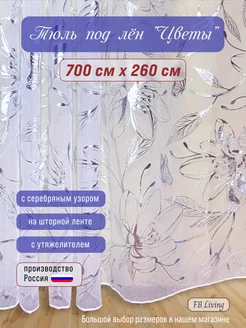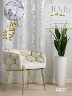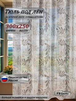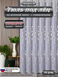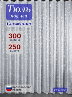 Тюль под лён "Снежинки" 300х250 для гостиной