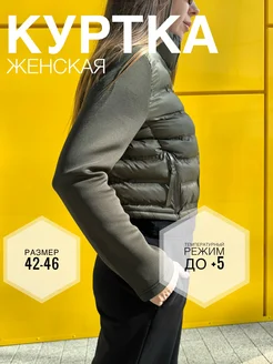 Куртка женская короткая осенняя на молнии зеленая хаки