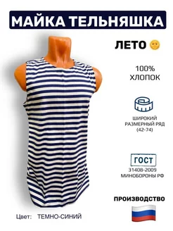Майка тельняшка 100% х.б кулирка летняя, темно-синий
