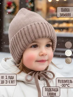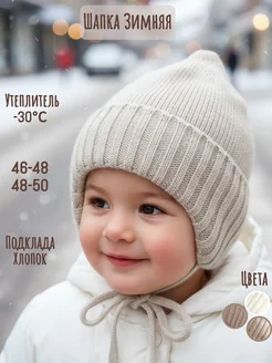 Шапка детская зимняя с отворотом на завязках