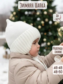 Шапка детская осенняя с ушками на завязках