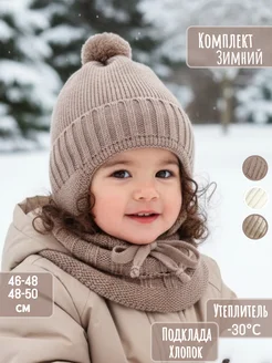 Комплект шапка снуд детская зимняя с отворотом
