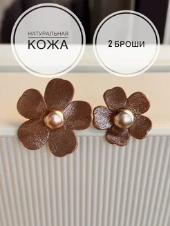 Брошь-цветок из натуральной кожи, большая и маленькая