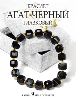 Браслет натуральный Агат черный глазковый 9 мм с огранкой