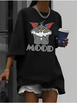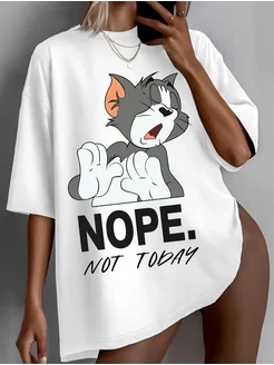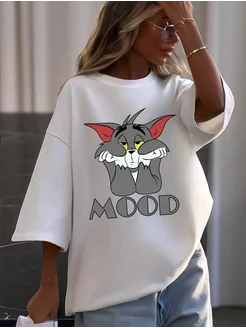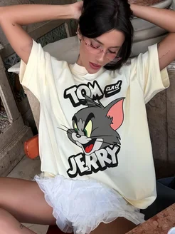 Сливочная футболка оверсайз с принтом Том и Джерри