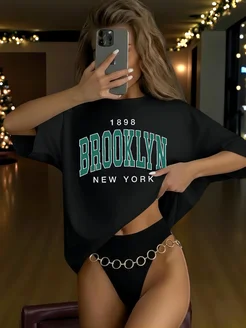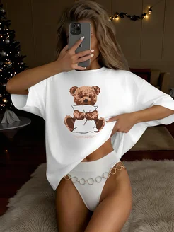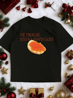 Новогодняя футболка оверсайз с принтом Бутерброд с икрой