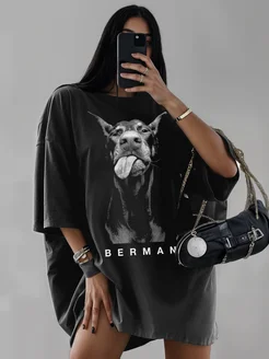 Футболка графит оверсайз с принтом доберман